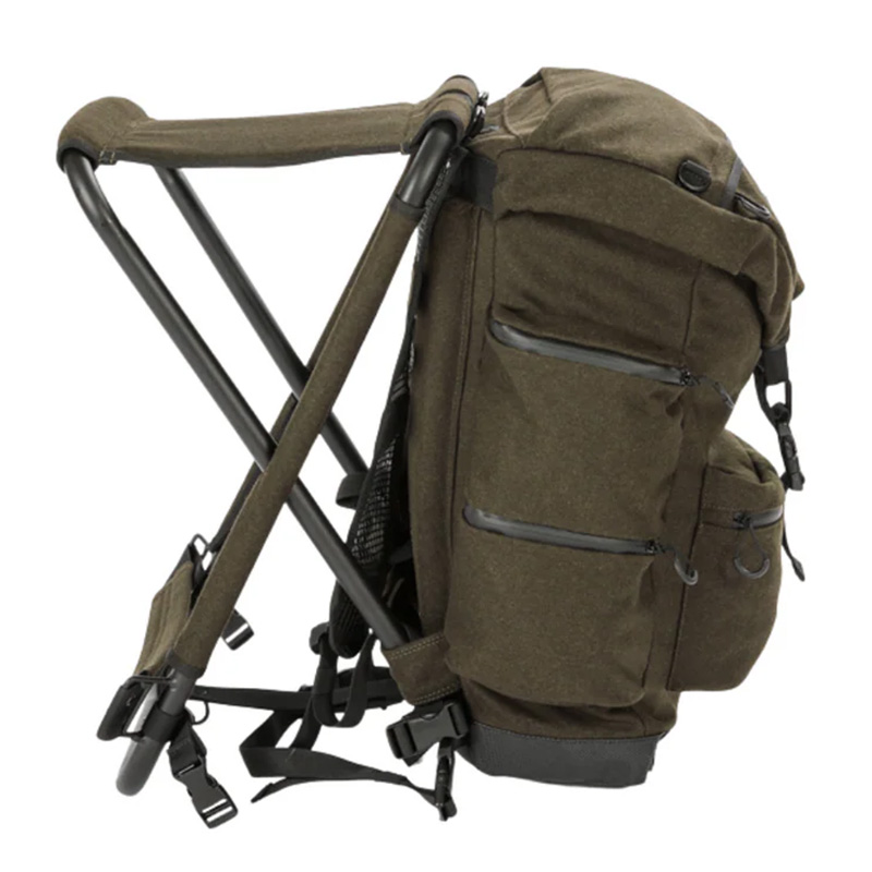 NordHunt Melton Stolsryggsäck High är en stabil och tyst kombination av ryggsäck och hopfällbar stol, utvecklad för jakt, fiske och friluftsliv där både bärkomfort och vilomöjlighet behövs. Den högre sitthöjden ger extra komfort vid längre pass i skog och mark, samtidigt som den robusta konstruktionen klarar tuffa nordiska förhållanden.