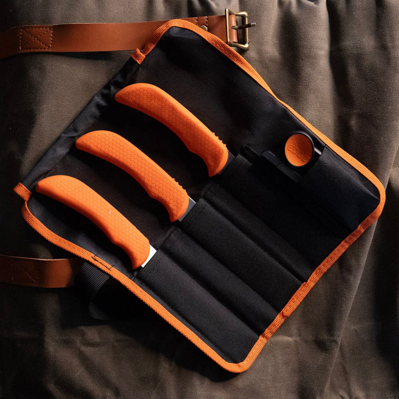 Det medföljande rollpacket gör det enkelt att transportera och förvara knivarna, samtidigt som de skyddas mellan jakterna. Ett perfekt val för jägare som vill ha ett komplett, prisvärt och funktionellt slaktkit.