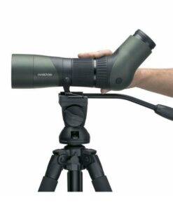 Okularet har en vinklad design (angled eyepiece) som ger en bekväm observationsvinkel, särskilt vid längre användning. Den stora, räfflade zoomringen gör det enkelt att justera förstoring med en hand, samtidigt som du behåller kontroll över utrustningen.
